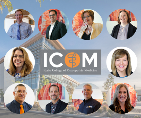 Eleven faculty members of the Idaho College of Osteopathic Medicine (ICOM) were recently recognized by the National Board of Osteopathic Medical Examiners (NBOME) for their contributions to the content development for COMLEX-USA, COMAT, COMVEX, and other NBOME assessments for osteopathic medical students and physicians, as well as leadership positions in 2020.