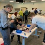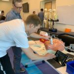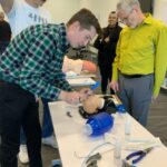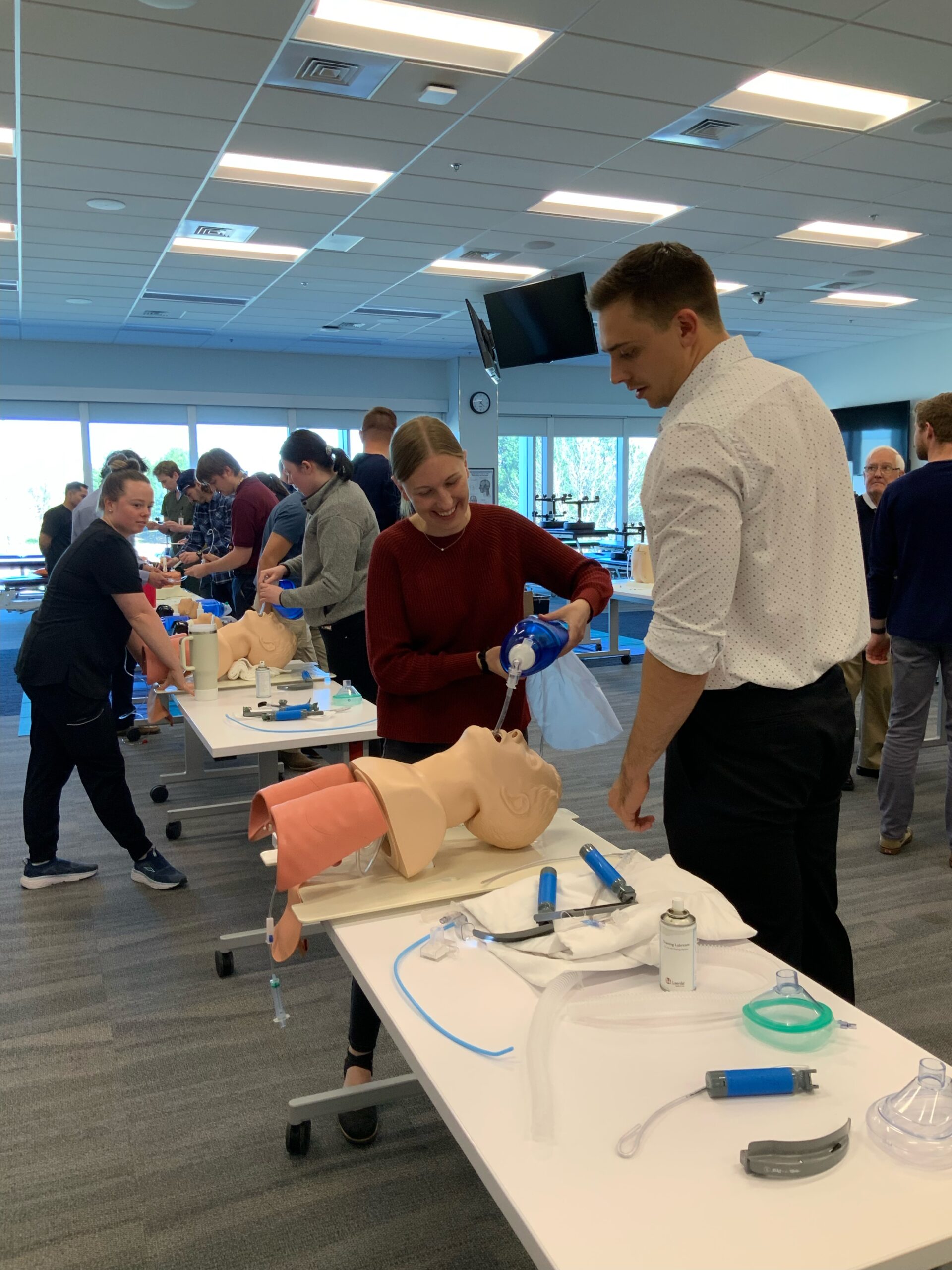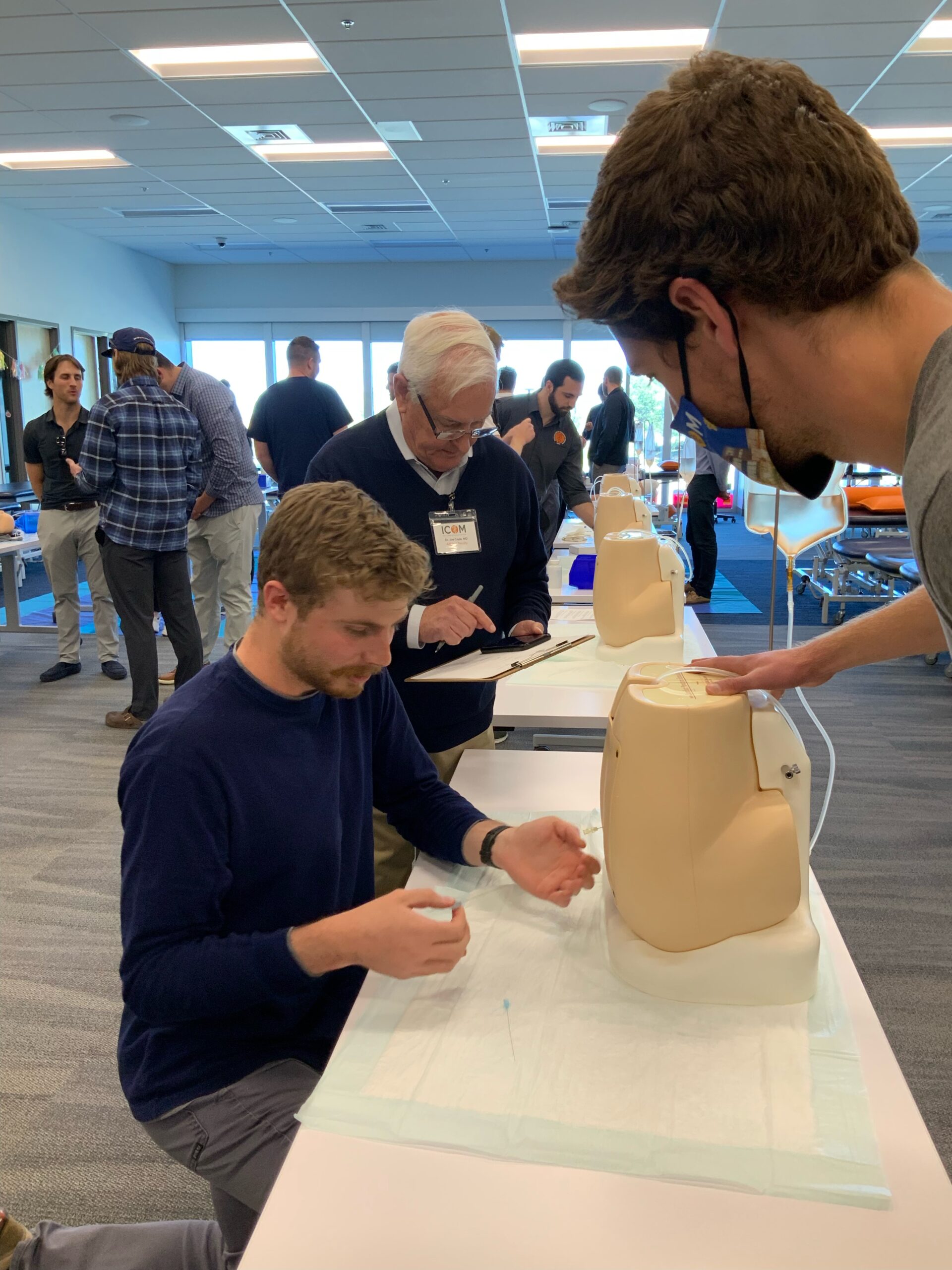 Working in teams of two, ICOM’s Anesthesia Olympics required participants to complete six stations showcasing different skills, including: starting an IV; adult intubation; neonatal intubation; epidural needle placement; 25-gauge lumbar puncture; and ultrasound-guided internal jugular aspiration.