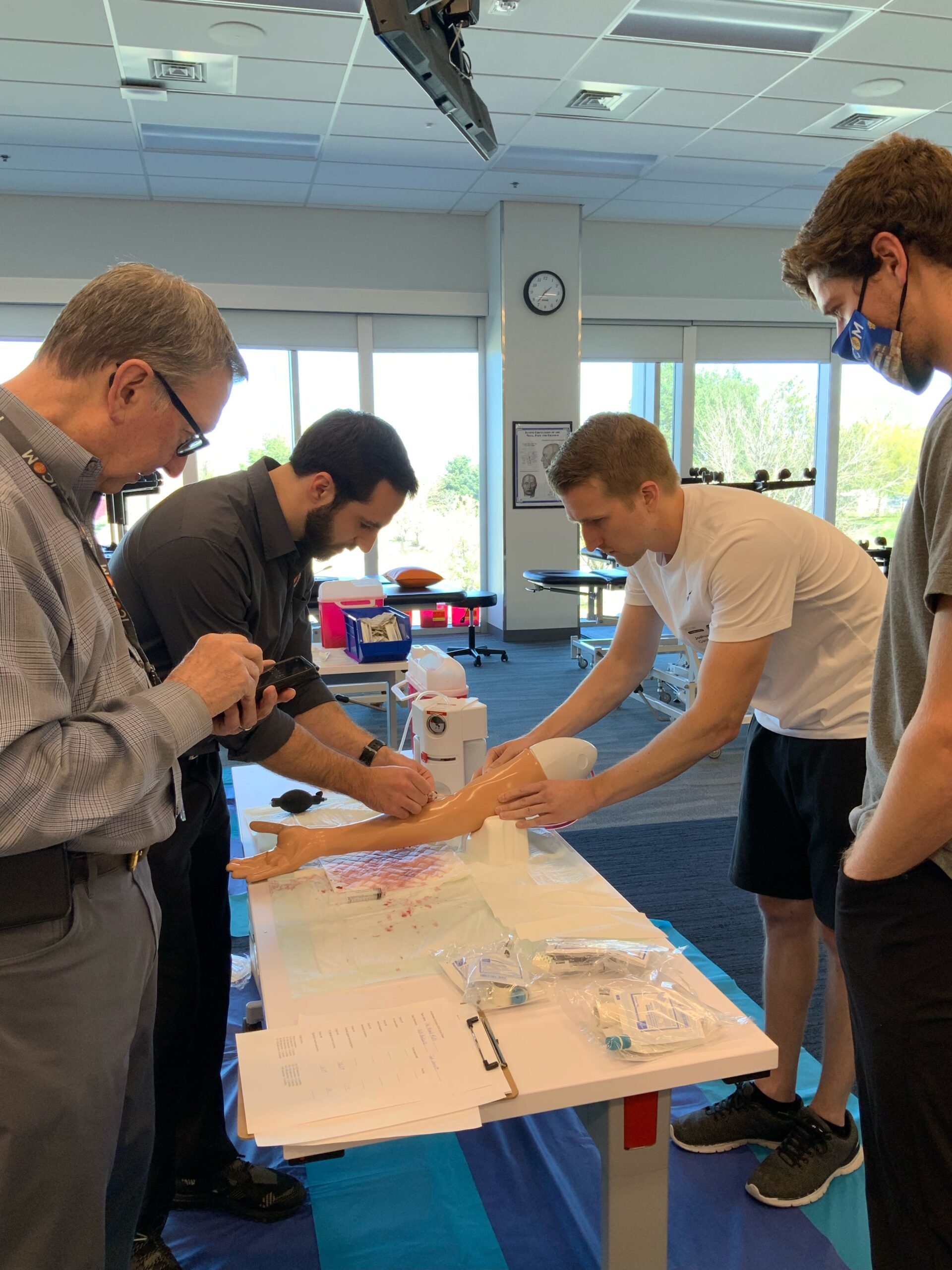 Students were given a maximum of three minutes to complete each station, but the faster the procedures were completed, the higher the score, with each teammate completing three of the six skill stations. ICOM faculty members Dr. Don Dyer, Dr. Jay Kammer, and Dr. Joseph Coyle served as judges.