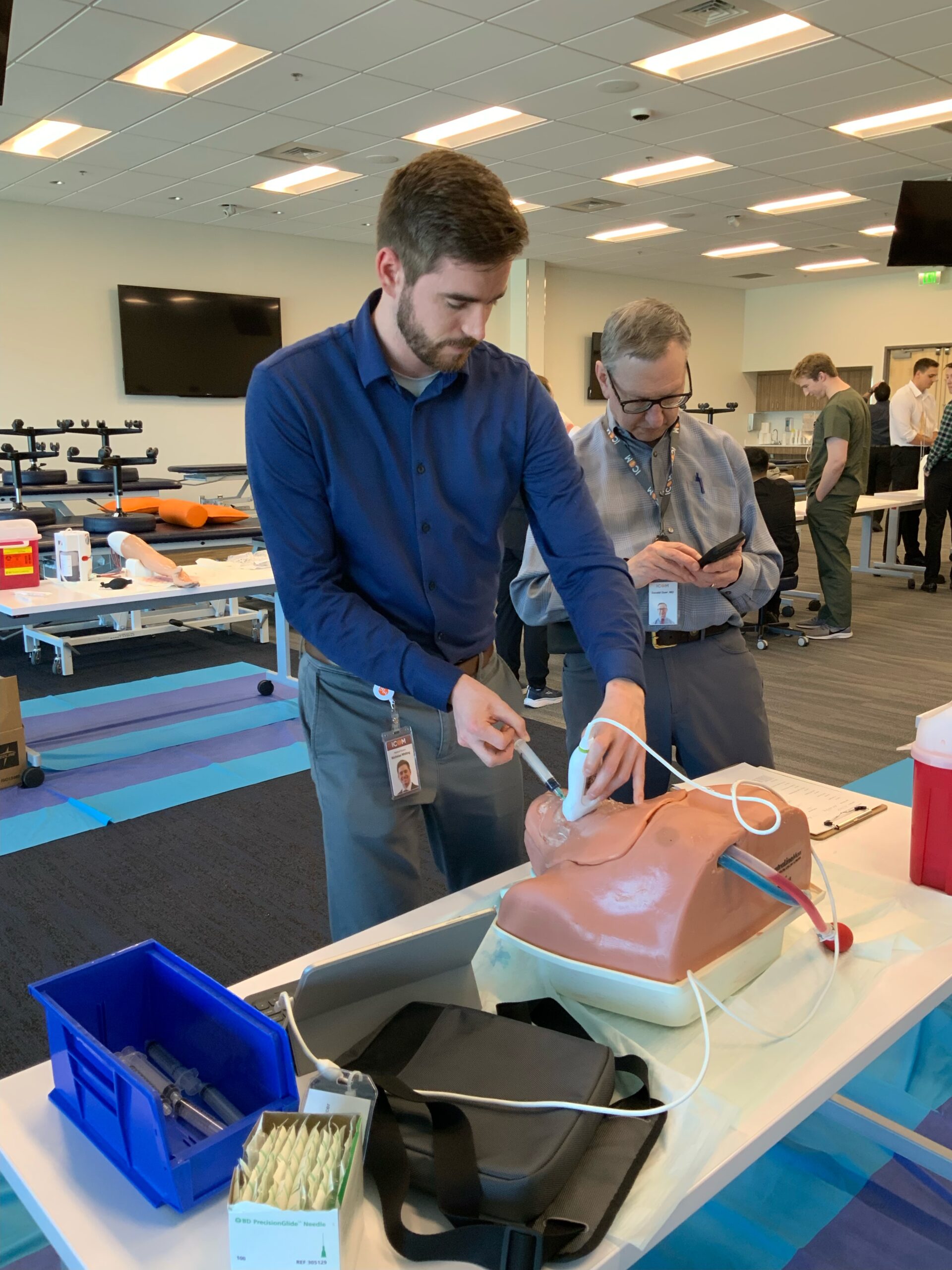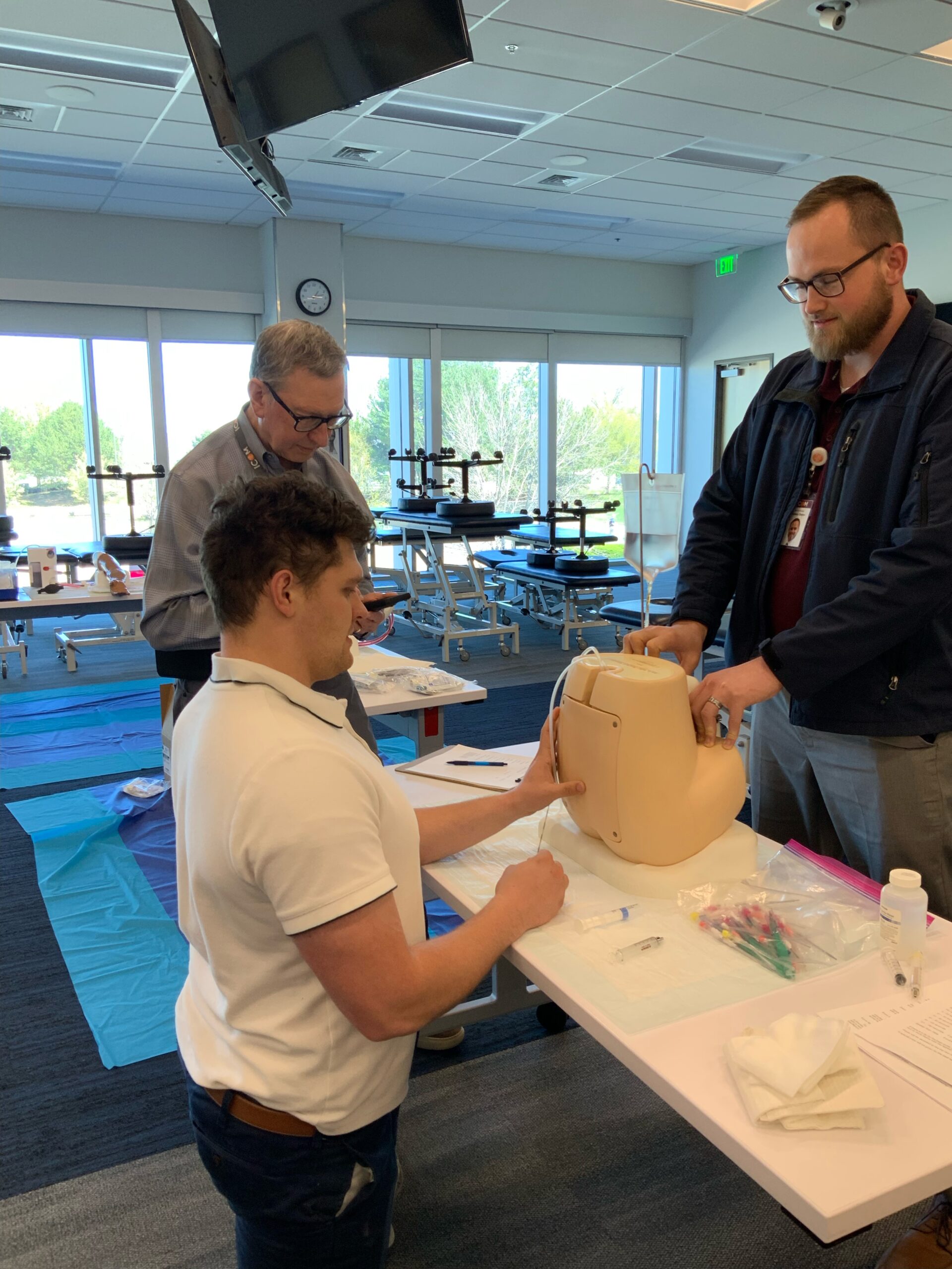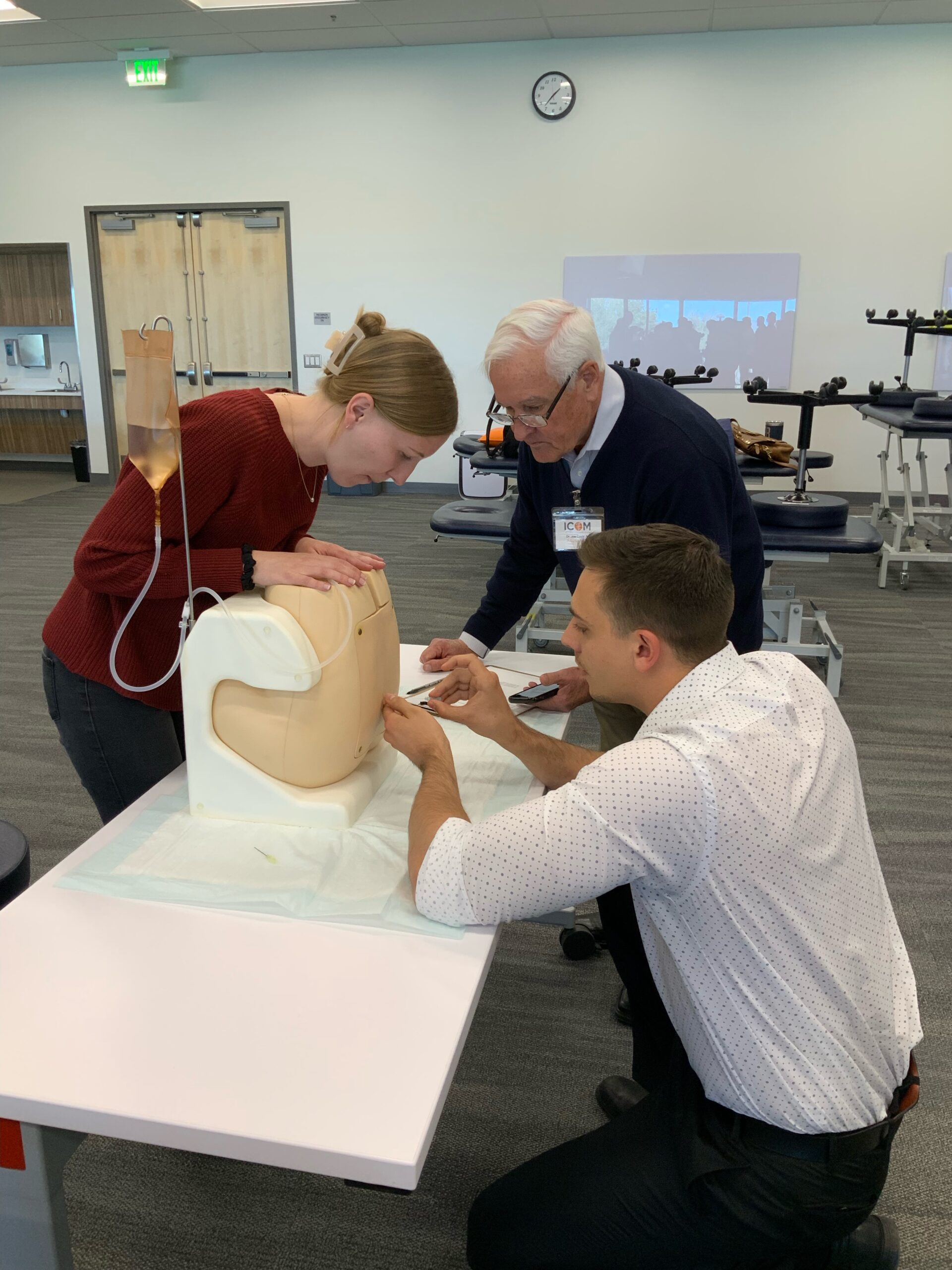 Working in teams of two, ICOM’s Anesthesia Olympics required participants to complete six stations showcasing different skills, including: starting an IV; adult intubation; neonatal intubation; epidural needle placement; 25-gauge lumbar puncture; and ultrasound-guided internal jugular aspiration.