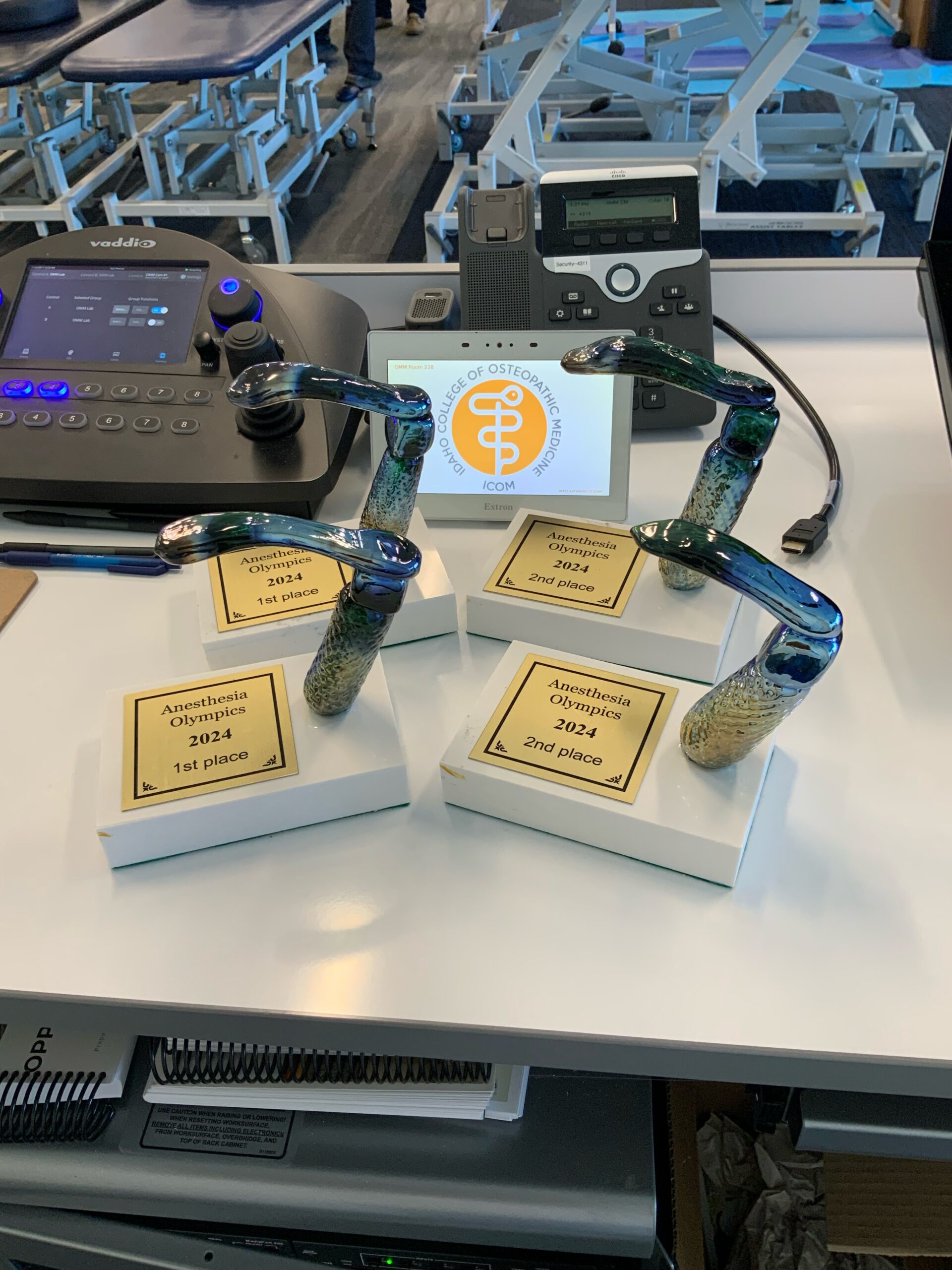 Second-year students Seth Berkowitz and Joshua Garrett, team name “The Numb Nuts,” won first place after a tiebreaker round of adult intubation speed. Student Doctors Berkowitz and Garrett also took first place in ICOM’s 2023 Anesthesia Olympics.