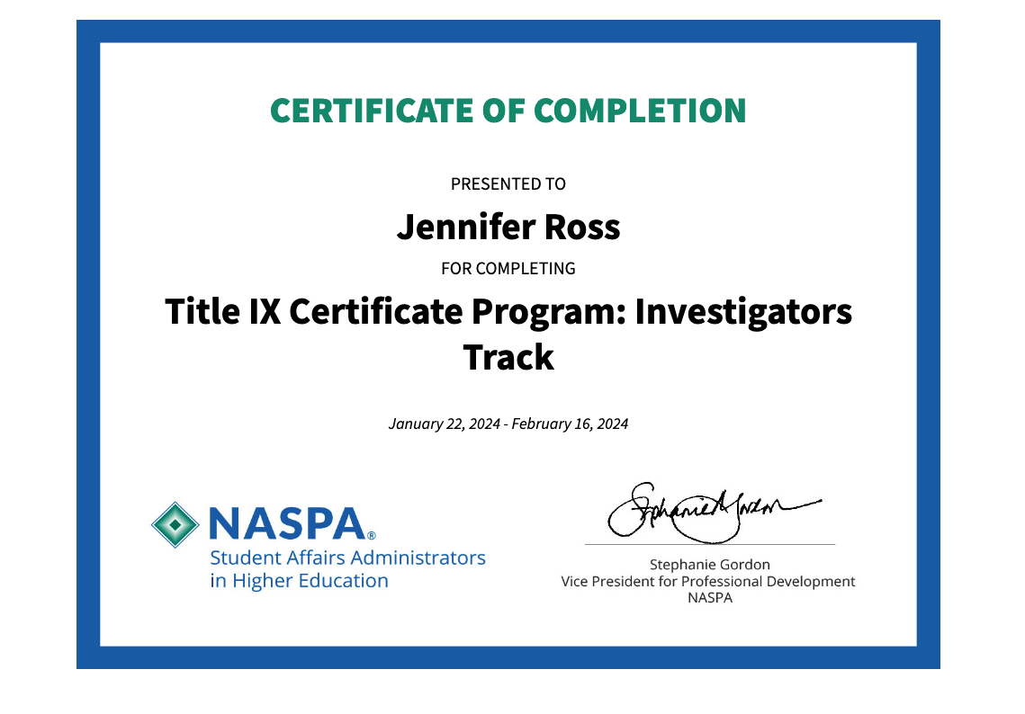 Title IX Solutions, LLC. Title IX Decision Maker Training completed November 3, 2023.