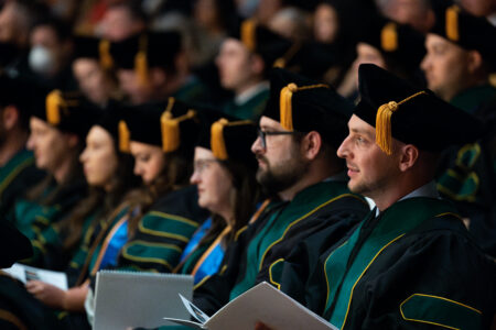 Following Dr. Epperly’s remarks, each new graduate was individually hooded, and symbolically transitioned from an osteopathic medical student to an osteopathic physician. Prior to the conclusion of the Hooding Ceremony, graduates recited the Osteopathic Oath, led by Richard Sloan, DO, FACOFP, Associate Professor of Osteopathic Principles and Practice.