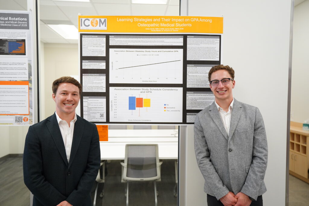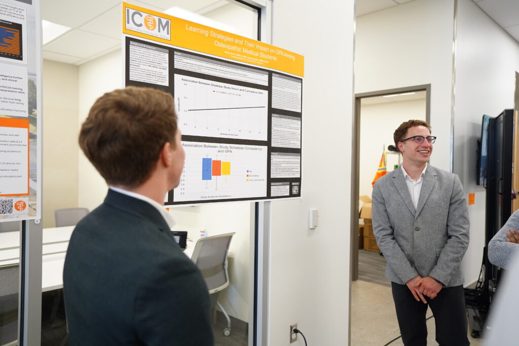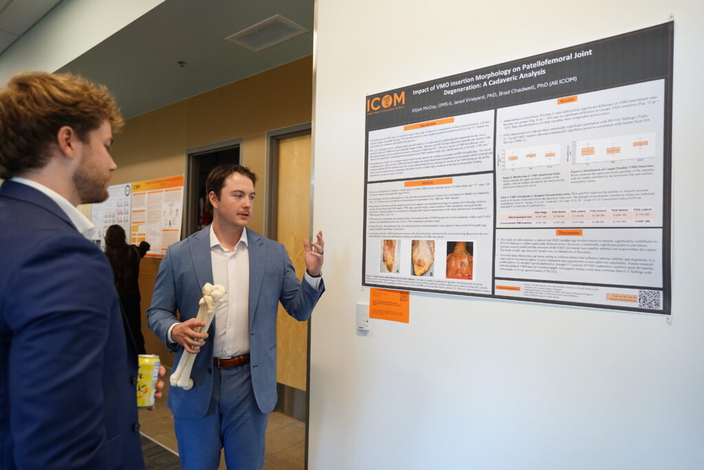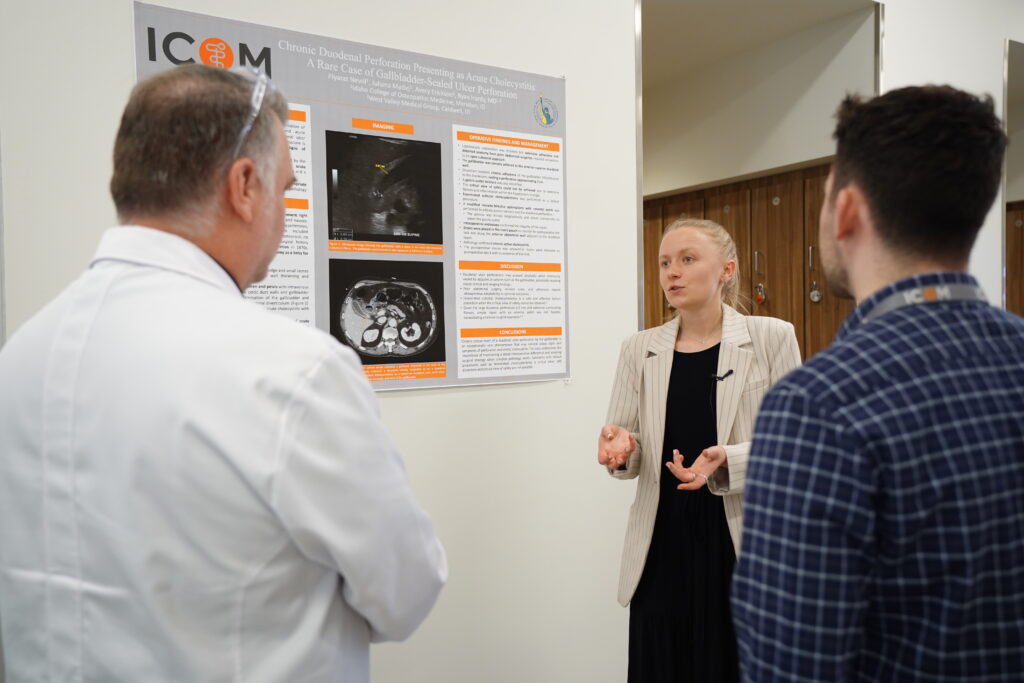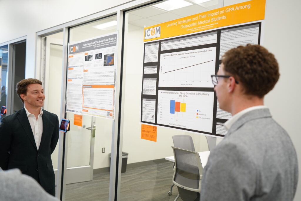 This year’s conference featured an impressive 100 student research posters, highlighting the breadth and depth of scholarly activity across ICOM’s student body. From clinical case studies and public health research to advancements in medical education and emerging technologies like artificial intelligence, the event reflected ICOM’s commitment to fostering inquiry and innovation in osteopathic medicine.