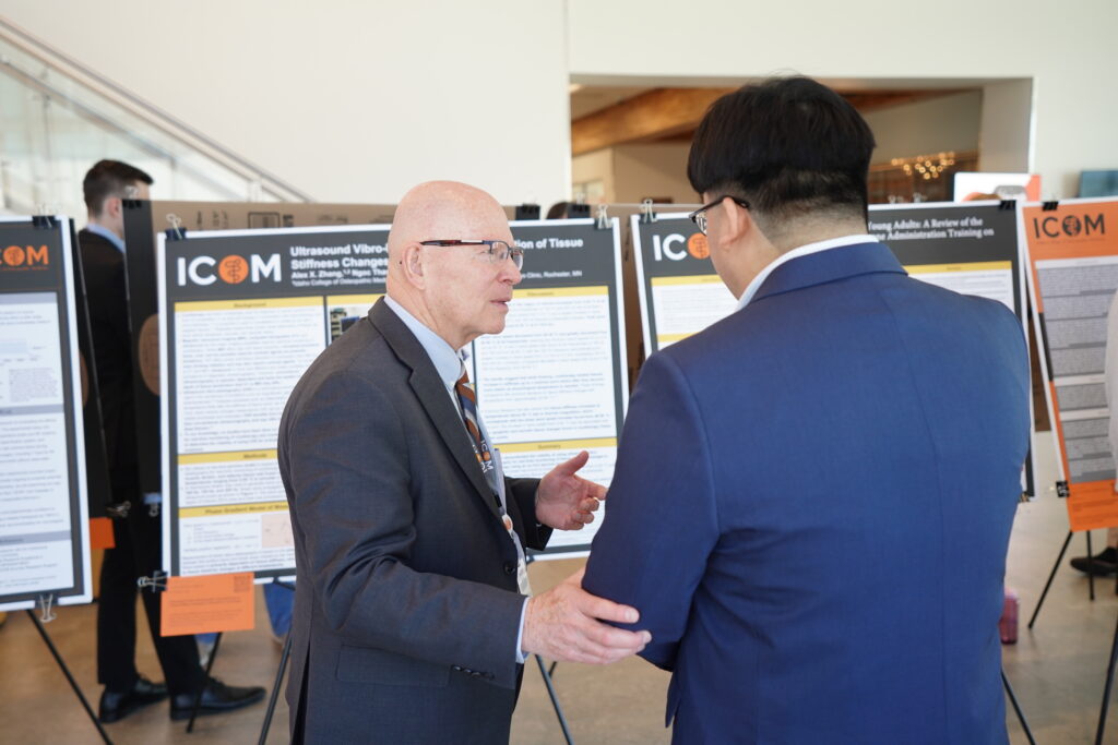 Following the keynote, attendees engaged with two poster sessions featuring ICOM student physicians. The posters spanned a wide array of topics, including rural healthcare delivery, surgical outcomes, neurological conditions, medical education strategies, and innovative biomedical research. Many projects were conducted in collaboration with regional and national partners, including healthcare systems and academic institutions, underscoring ICOM’s growing research footprint.