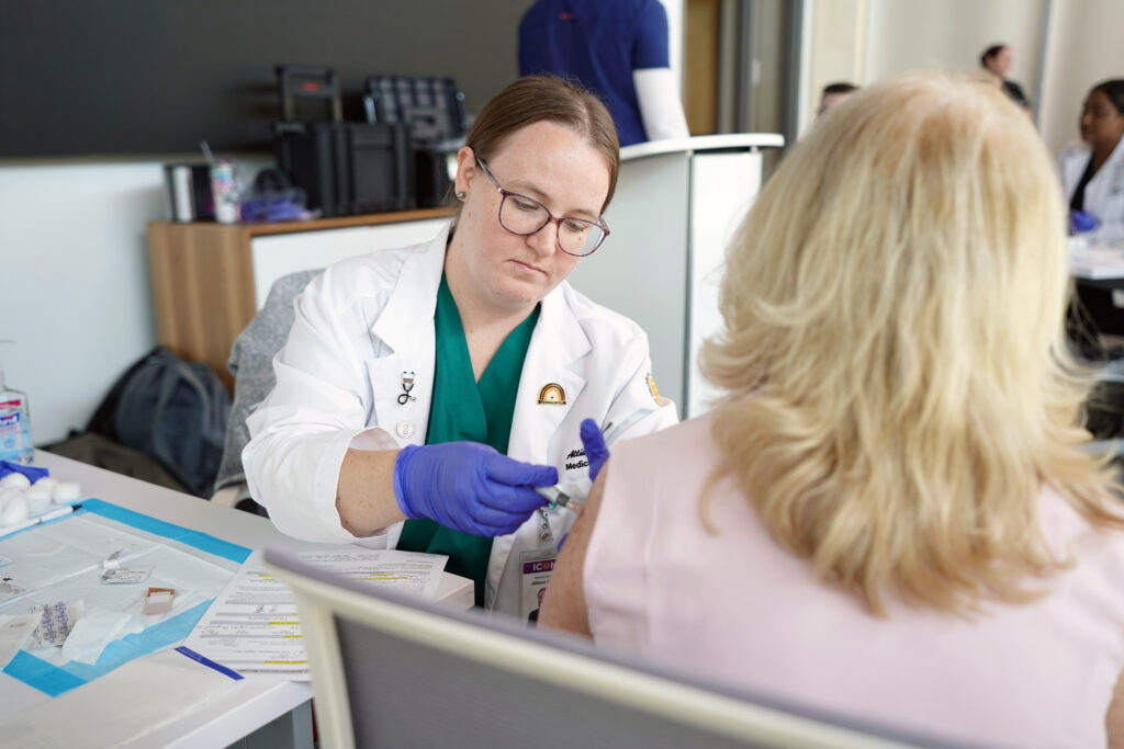 Members of the Student Osteopathic Internal Medicine Association (SOIMA) recently organized a flu shot clinic on campus, where students, faculty and staff could stop by to receive their annual vaccination. The clinic not only helped protect against the flu, but also gave student physicians a valuable opportunity to practice administering vaccines on real patients, under the guidance of physician faculty members.