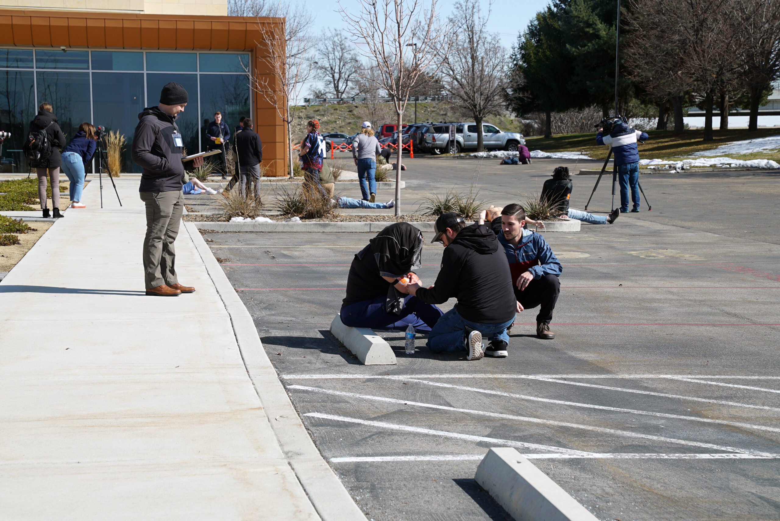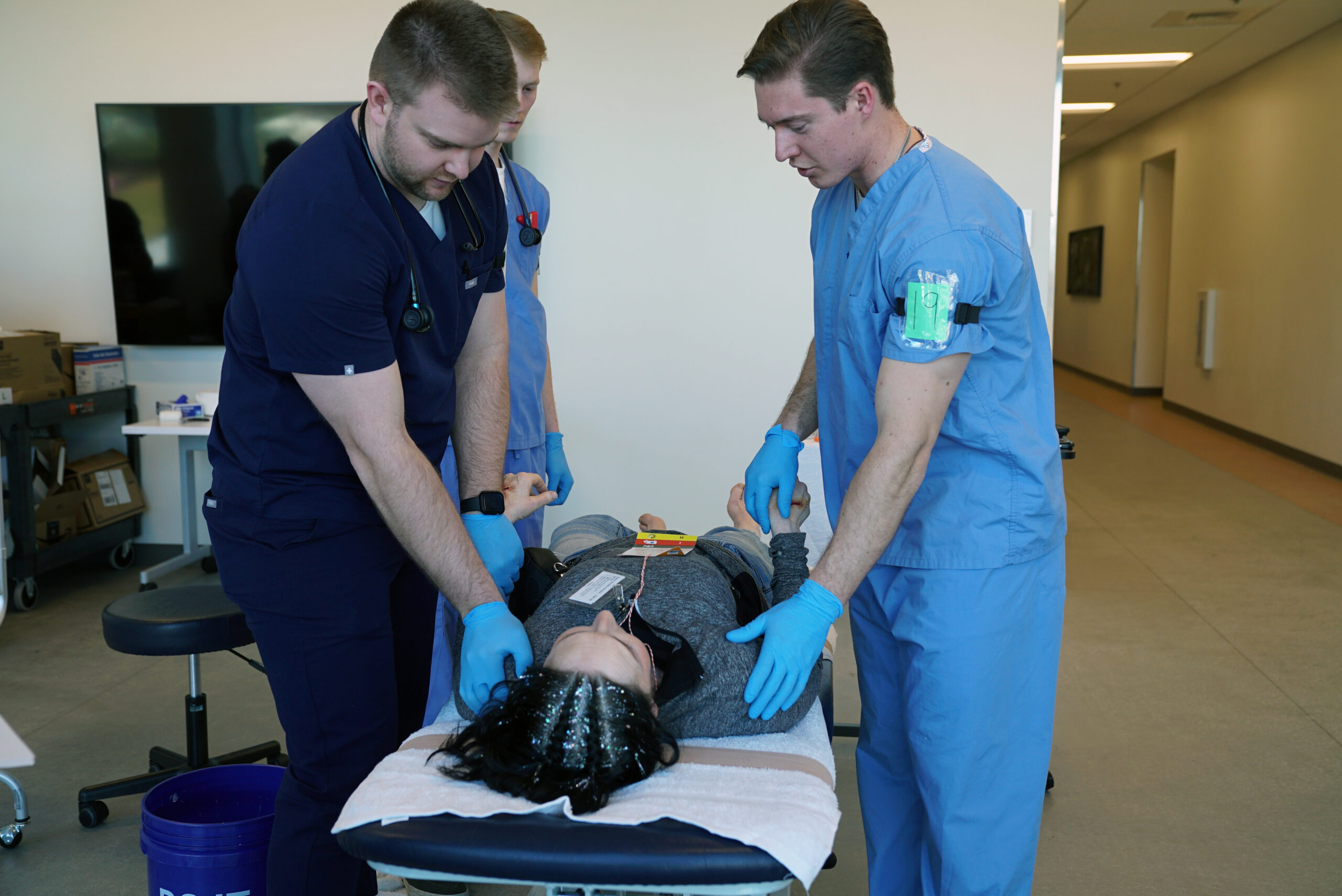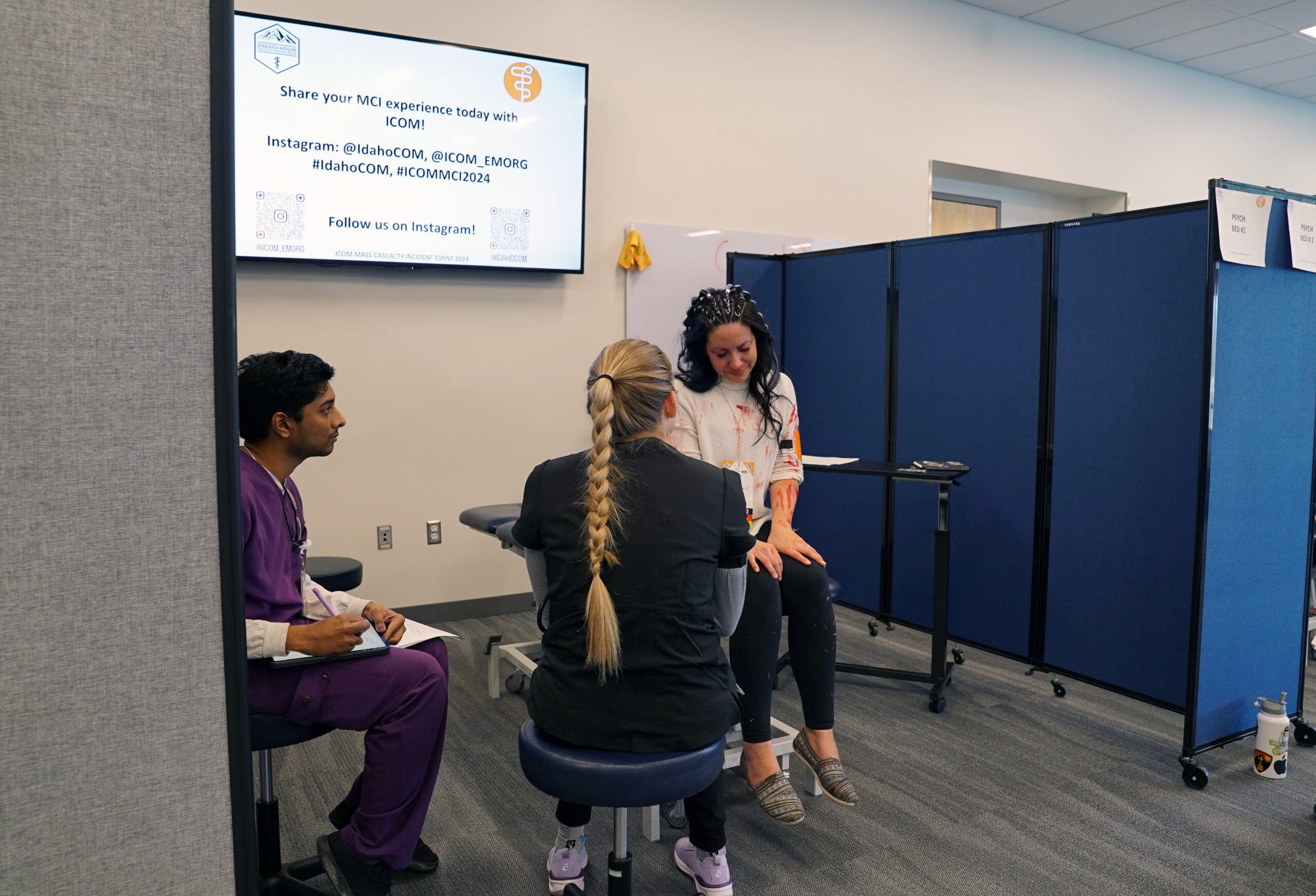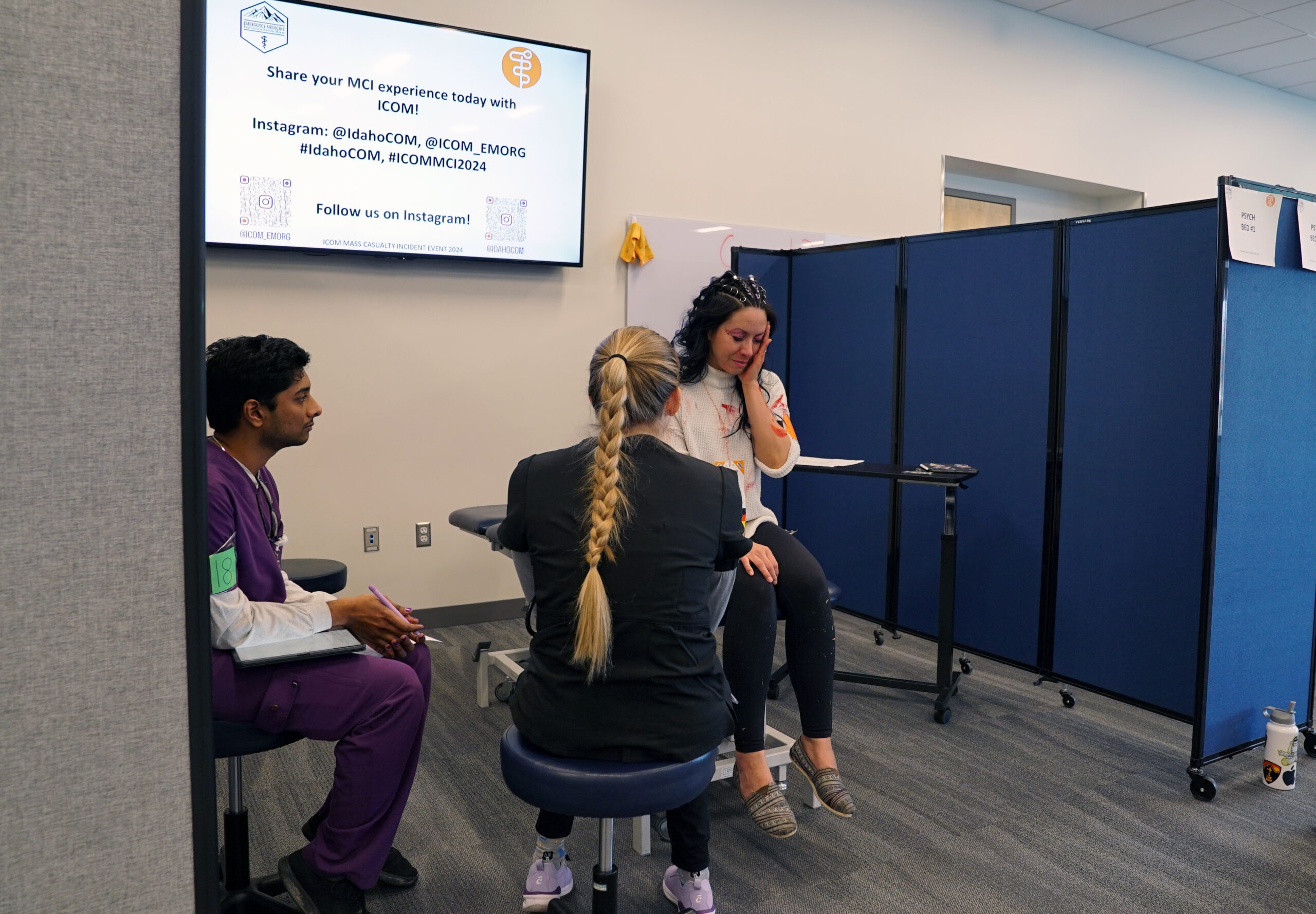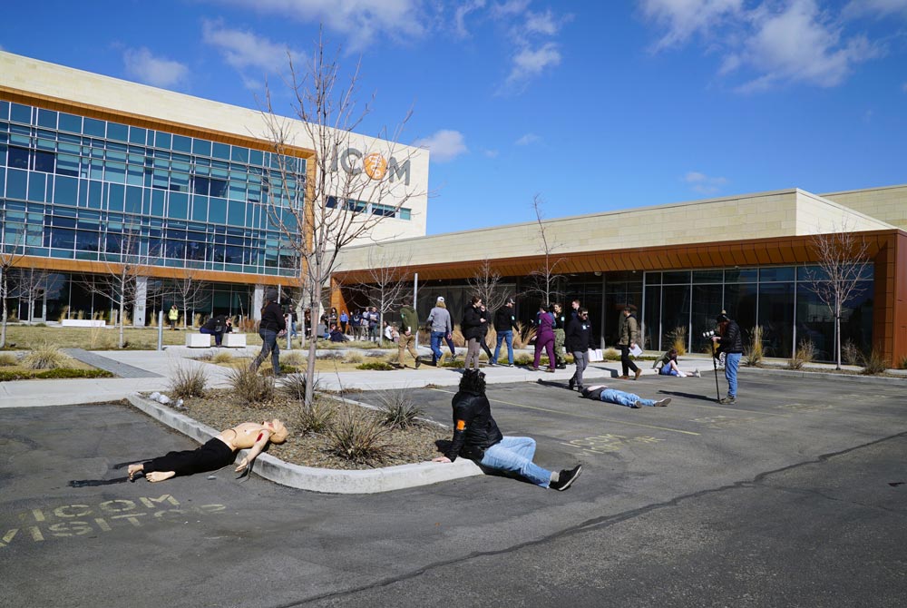 The Idaho College of Osteopathic Medicine hosted its largest simulation event on campus on Friday, March 8. This simulated, full-scale, mass casualty incident (MCI) training exercise brought together the College’s student physicians, clinical faculty and support staff, as well as representatives from the Idaho Medical Academy, and cosmetology students from Paul Mitchell the School’s Boise and Nampa locations.
