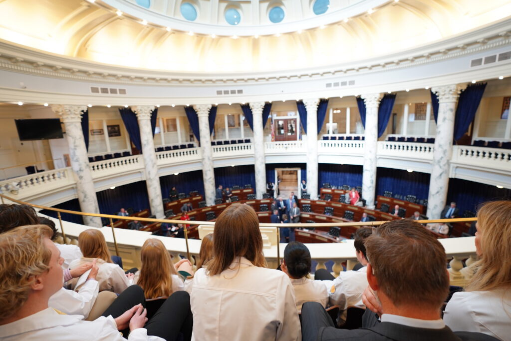 The visit continued in the Senate Gallery, where students observed legislative proceedings and gained a deeper understanding of how policy decisions are made at the state level.