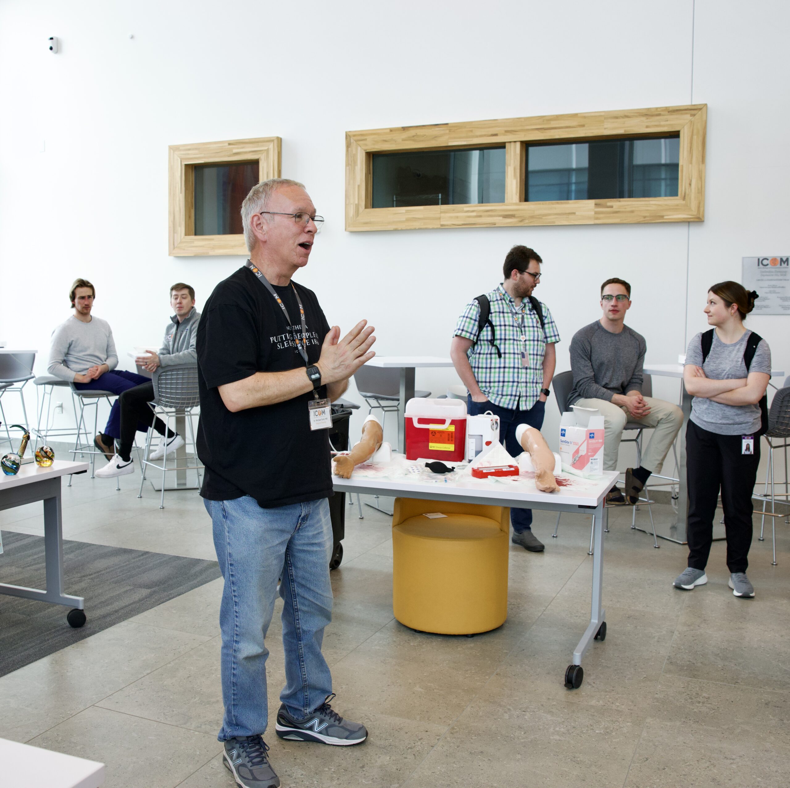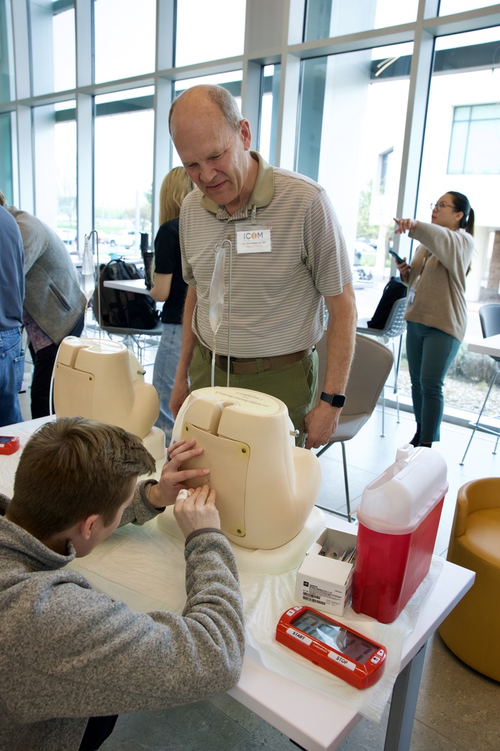 ICOM’s “Anesthesia Olympics” required participants to complete stations that showcase different skills. Students are given a maximum of three minutes to complete each station, but the faster the procedures are completed, the higher their score.