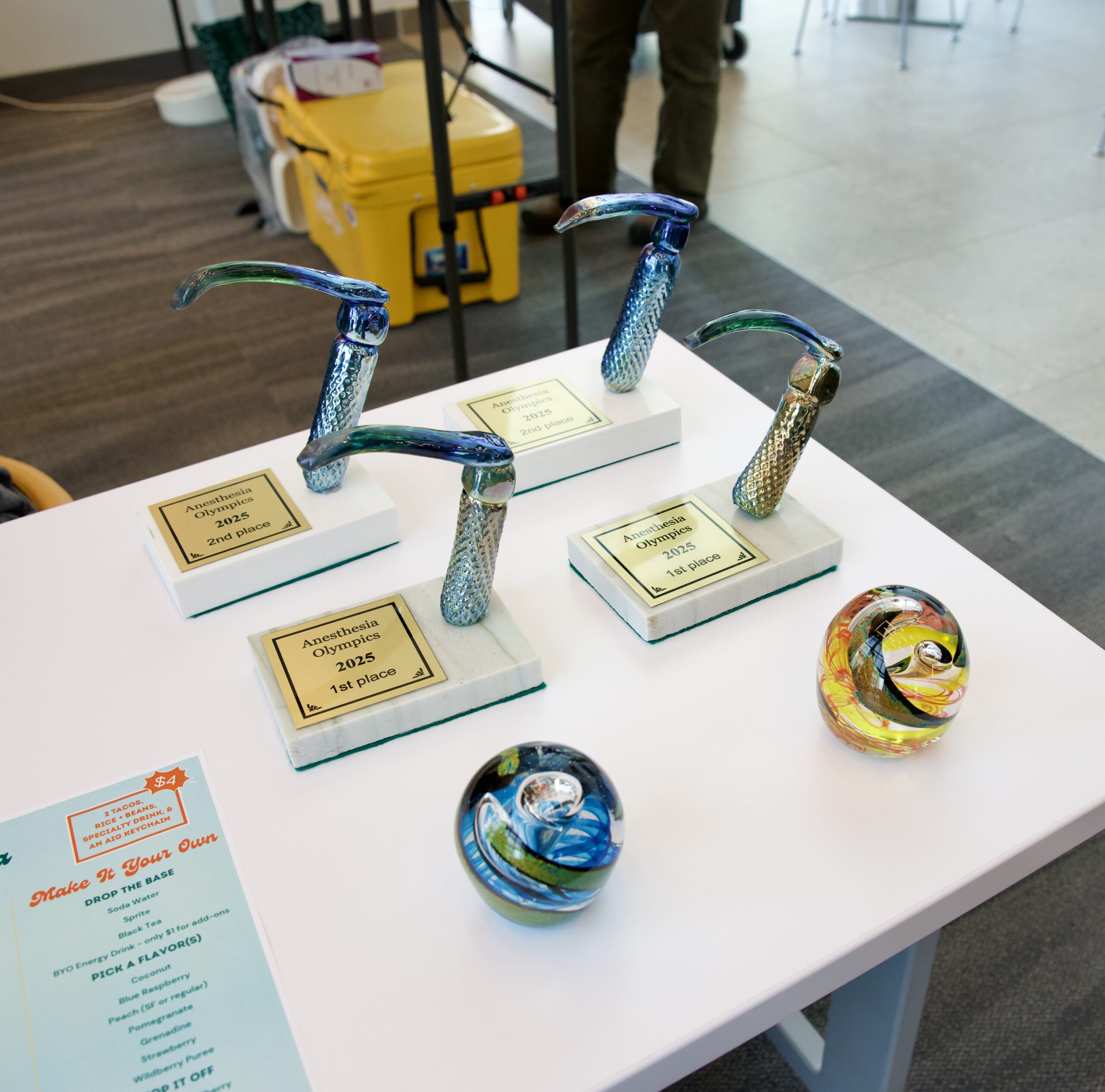 The winners received a coveted “Larry” award, modeled after an anesthesiologist’s most handy tool — a laryngoscope. The hand-blown glass awards were made by Dr. Gold.